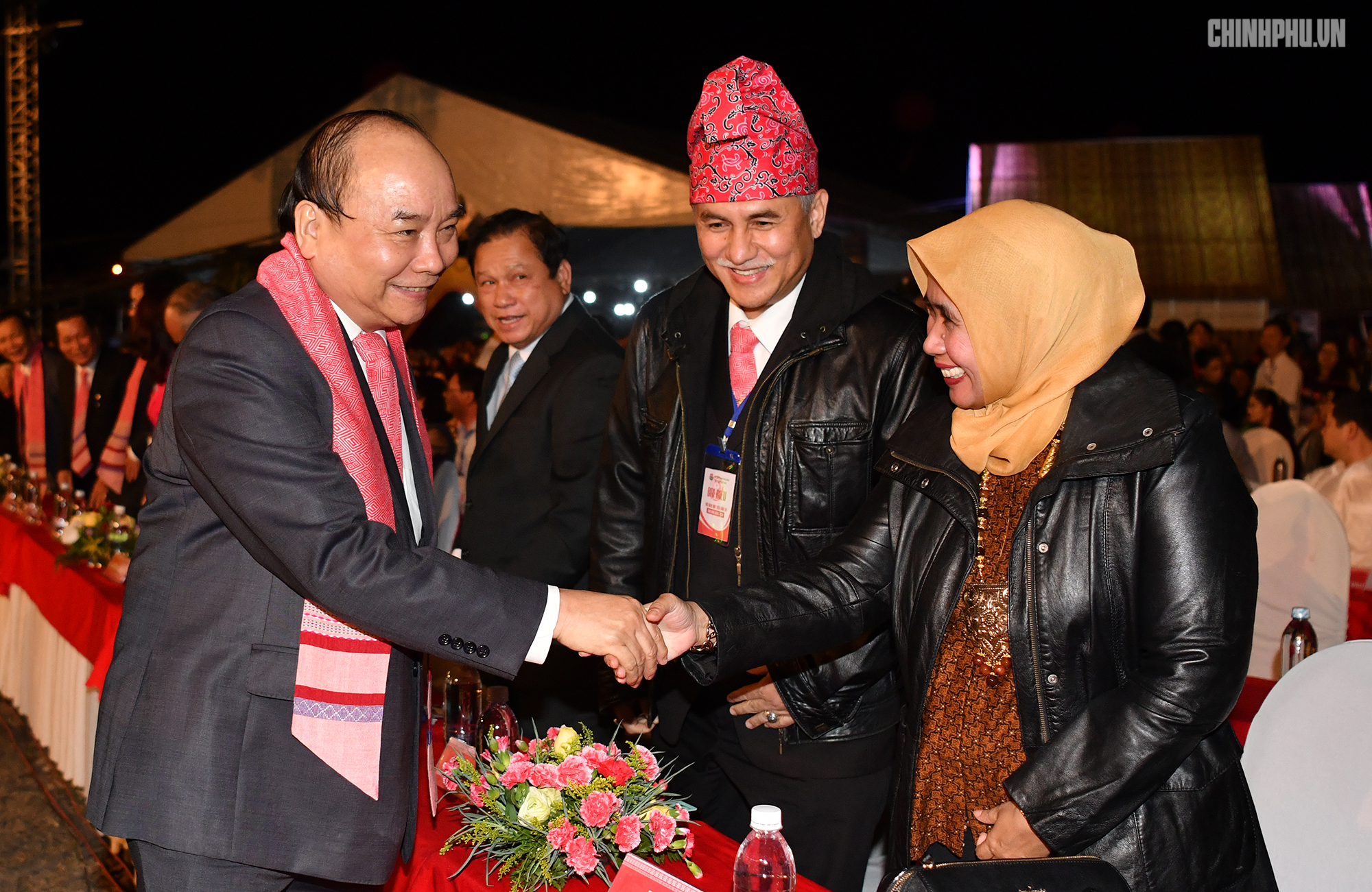 | Thủ tướng chào các vị khách quốc tế tham gia lễ hội. Ảnh: VGP/Quang Hiếu |