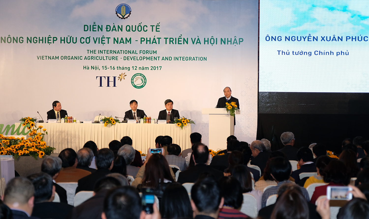 Phát biểu tại Diễn đàn quốc tế về nông nghiệp hữu cơ sáng 16/12, Thủ tướng bày tỏ ấn tượng về Diễn đàn, không những số lượng đại biểu tham dự đông mà còn có thông tin phong phú. Các đại biểu đã chia sẻ những kinh nghiệm, những nhận thức, nhất là nhận thức rõ bản chất của nông nghiệp hữu cơ và nhận diện những khó khăn, thách thức về thể chế, cơ chế phát triển.