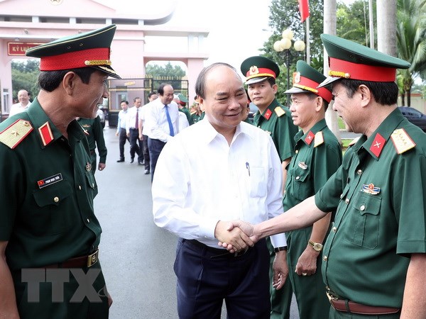 | Thủ tướng Nguyễn Xuân Phúc đến thăm, làm việc với Binh đoàn 16 (Bộ Quốc phòng). (Ảnh: Thống Nhất/TTXVN) |