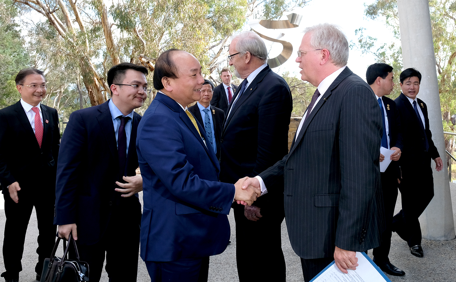 | Thủ tướng và lãnh đạo Đại học Quốc gia Australia. Ảnh: VGP/Quang Hiếu |