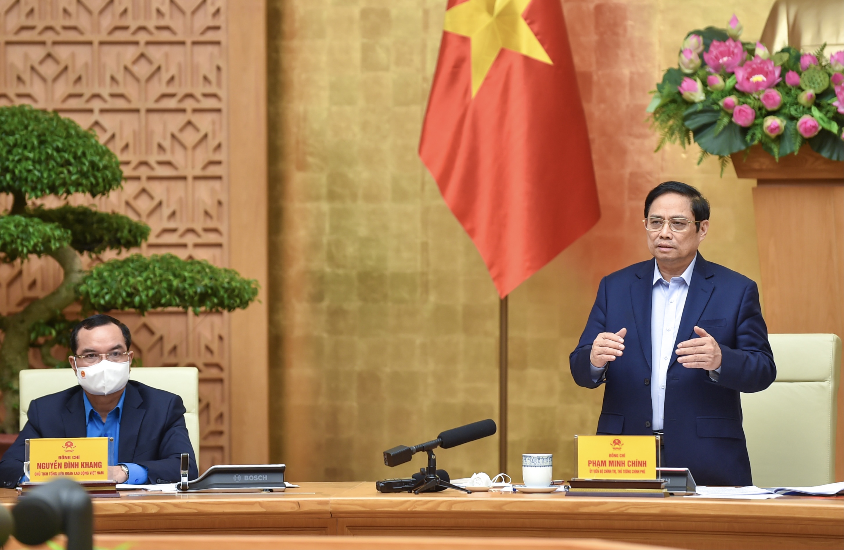 Thủ tướng mong muốn các cấp công đoàn, công nhân, người lao động và các doanh nghiệp tích cực, phát huy tối đa tính chủ động, sáng tạo, nâng cao tính tự chủ, tinh thần trách nhiệm trong phòng chống dịch - Ảnh: VGP/Nhật Bắc