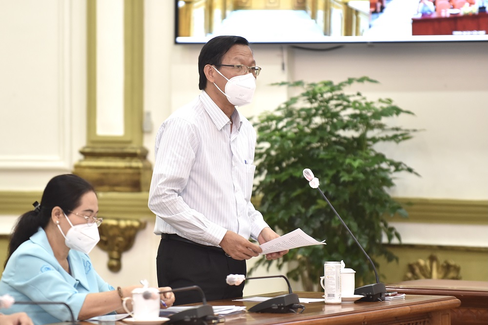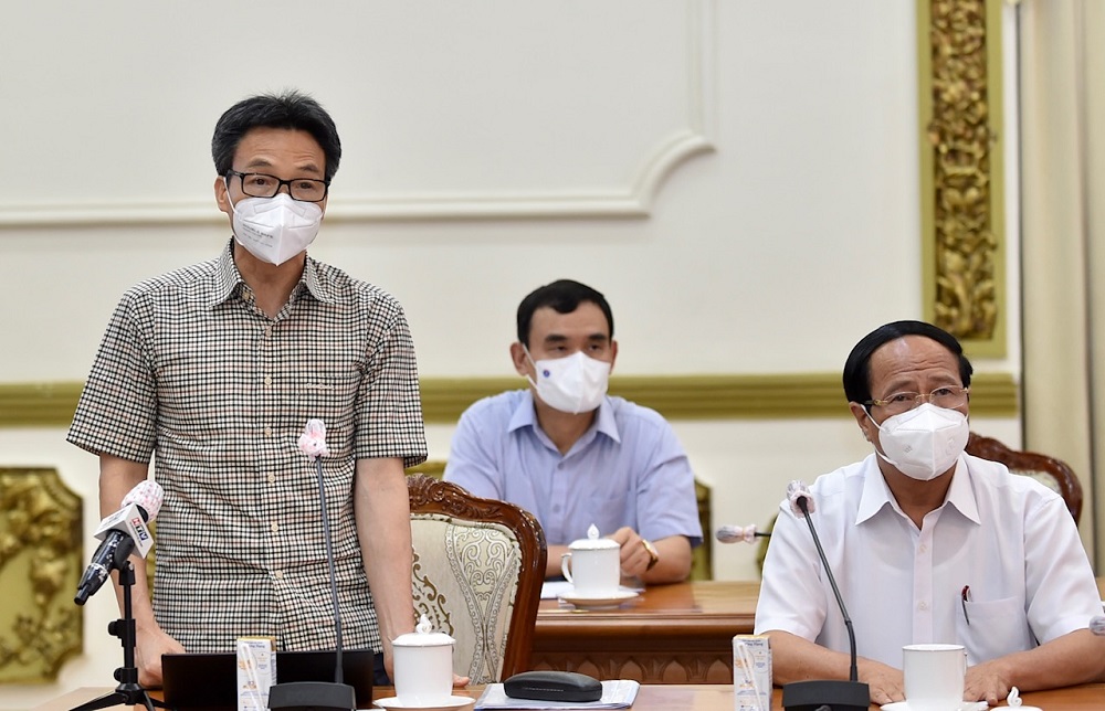 Về các đề xuất của Thành phố, Thủ tướng đề nghị các bộ, ngành Trung ương tiếp tục hỗ trợ cho TP Hồ Chí Minh thực hiện công tác phòng, chống dịch trong giai đoạn "cao điểm nhất". Tiếp tục ưu tiên vaccine cho Thành phố trong điều kiện vaccine khan hiếm. Nhấn mạnh yêu cầu không để ách tắc việc vận tải, lưu thông hàng hóa giữa các địa phương thực hiện tăng cường giãn cách xã hội, Thủ tướng chỉ rõ, các địa phương dứt khoát không ban hành giấy phép con, nếu có thì Bộ Giao thông vận tải phải phê bình, chấn chỉnh, báo cáo Thủ tướng nếu không xử lý được.