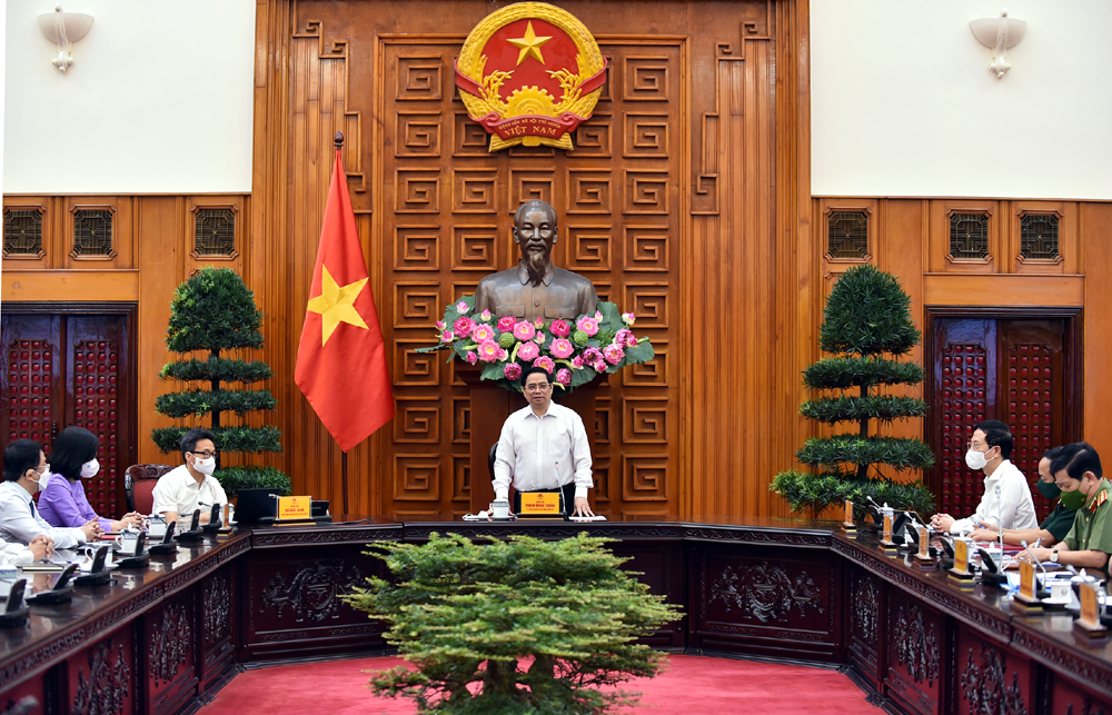 Thủ tướng đề nghị các bộ, ngành liên quan phối hợp với TTXVN nói chung và với đồng chí Tổng Giám đốc TTXVN nói riêng trong công tác để TTXVN không ngừng đổi mới, phát triển, giữ vững vị thế là cơ quan thông tin chiến lược của Đảng và Nhà nước. Ảnh VGP/Nhật Bắc