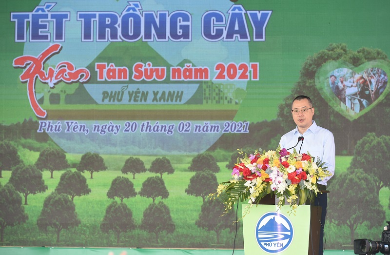 Lãnh đạo tỉnh Phú Yên chân thành cảm ơn và gửi lời chúc mừng năm mới tới Thủ tướng Chính phủ Nguyễn Xuân Phúc và đoàn công tác Chính phủ tới Phú Yên dự lễ phát động Tết trồng cây, hưởng ứng và thực hiện lời kêu gọi của Chủ tịch Hồ Chí Minh; cảm ơn Cổng Thông tin điện tử Chính phủ đã phối hợp cùng UBND tỉnh tổ chức sự kiện hôm nay, các nhà tài trợ đã ủng hộ tỉnh Phú Yên trong việc triển khai chương trình trồng cây xanh 5 năm tới.