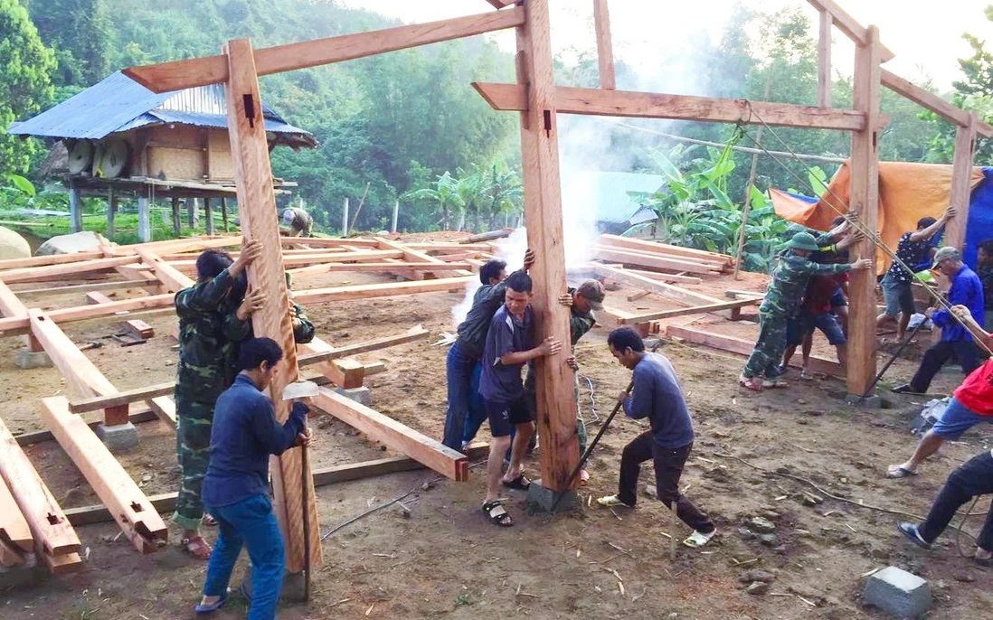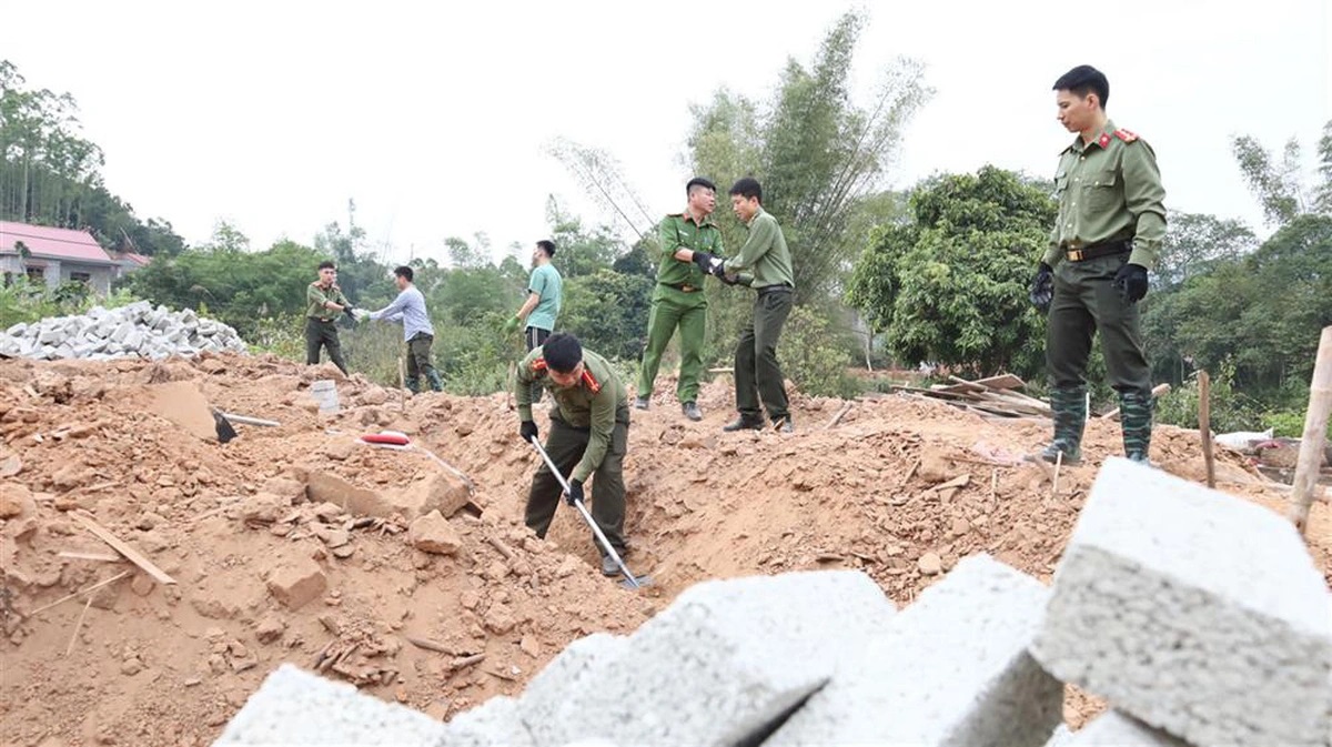 Lực lượng công an tham gia xóa nhà tạm, nhà dột nát tại Lạng Sơn - Ảnh: Bộ Công an