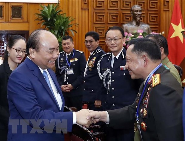 | Thủ tướng Nguyễn Xuân Phúc tiếp các Trưởng đoàn dự Hội nghị ASEANAPOL 39. (Ảnh: Thống Nhất/TTXVN) |