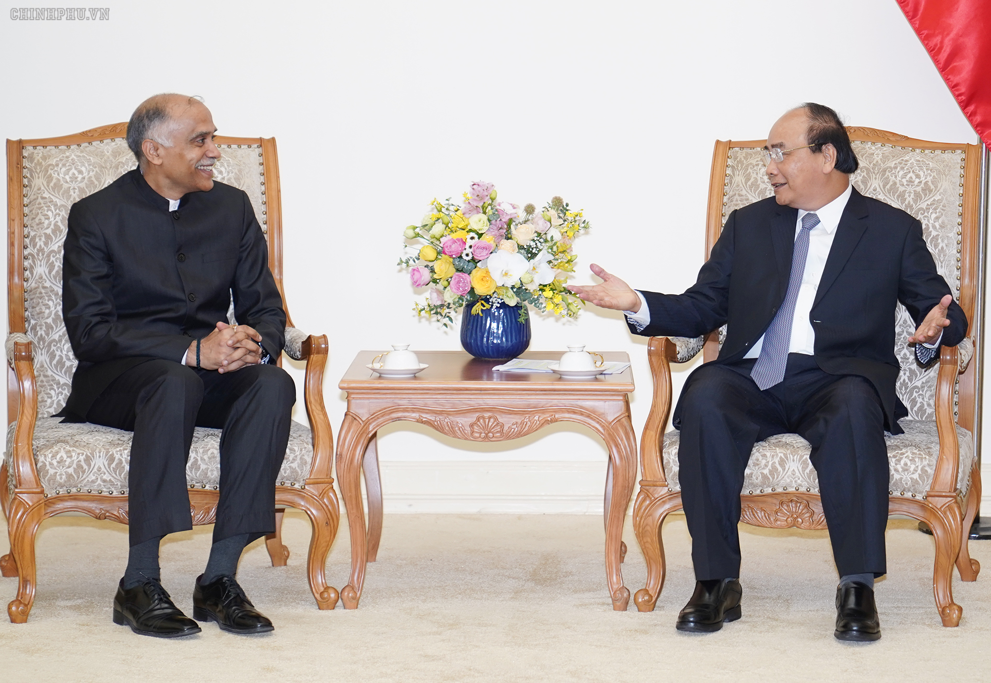 | Thủ tướng Nguyễn Xuân Phúc và Đại sứ Ấn Độ Parvathaneni Harish - Ảnh: VGP/Quang Hiếu |