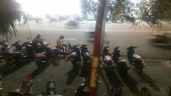 Theo quan sát PV: tại đây có ít nhất 2- điểm trông giữ xe tự phát ở trên vỉa hè đường Bà Triệu, các điểm này mở ra nhằm để giữ xe, phục vụ cho người dân vào tham quan mua sắm tại Trung tâm mua sắm sinh viên ban đêm. Ghi nhận của PV chỉ trong vài tiếng đồng hồ có đến hơn 100 lượt xe máy gửi.