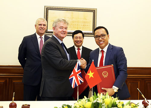 Sau buổi tiếp, Phó Thủ tướng Phạm Bình Minh và Hoàng tử Andrew đã chứng kiến Lễ ký kết 02 Bản ghi nhớ hợp tác giữa Cục Ngoại vụ, Bộ Ngoại giao với Hiệp hội Doanh nghiệp Anh quốc tại Việt Nam (BBGV) và với Đại học Anh quốc Việt Nam (BUV).