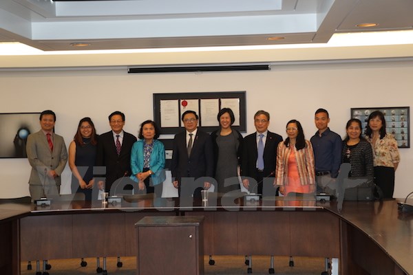 | Đoàn làm việc với Bộ trưởng Ngoại giao và Pháp Ngữ tỉnh Quebec Christine St-Pierre. (Nguồn: Vietnam+) |
