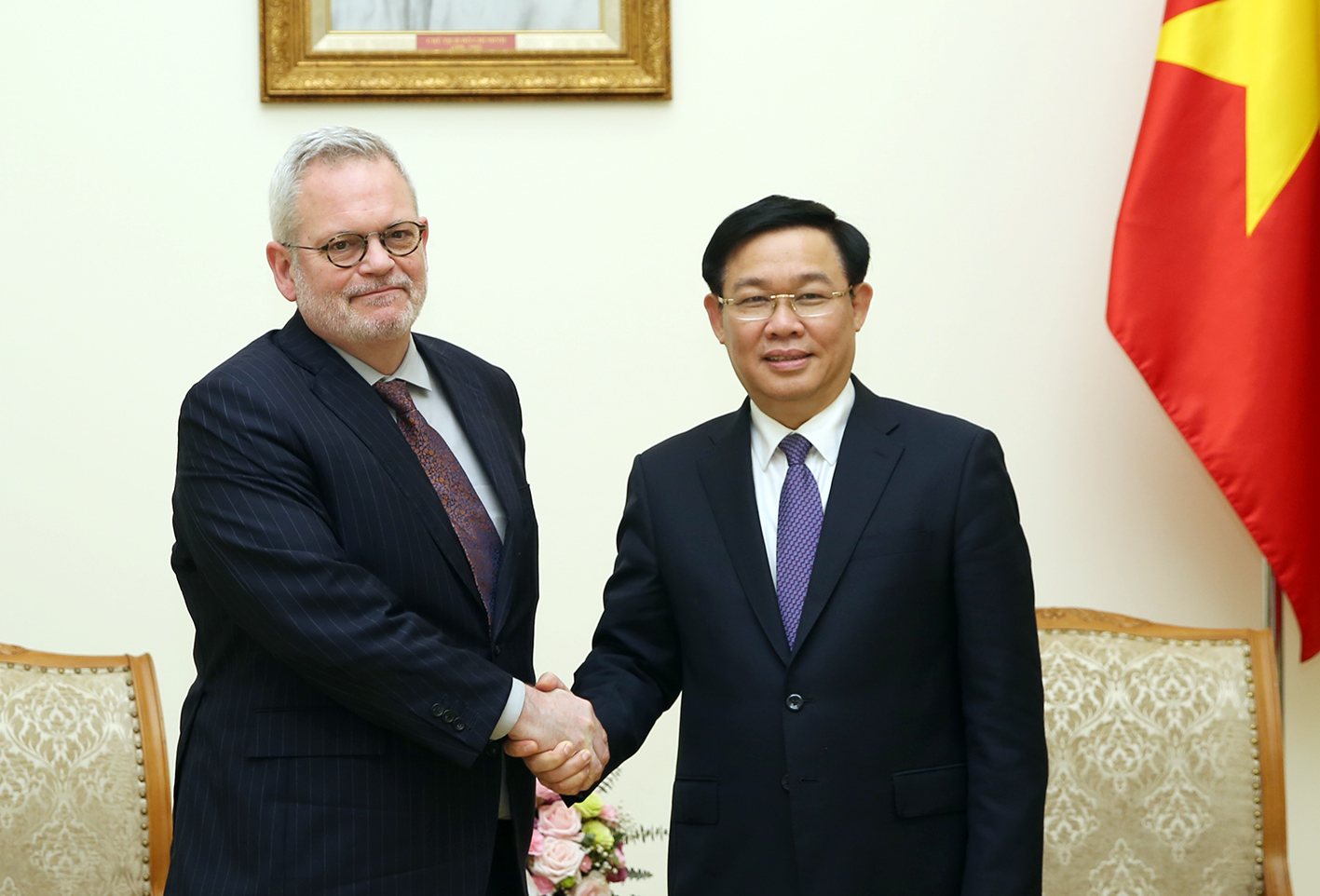 Phó Thủ tướng Vương Đình Huệ tiếp Phó Chủ tịch Phòng Thương mại Hoa Kỳ (USCC) Charles Freeman. Ảnh: VGP/Thành Chung