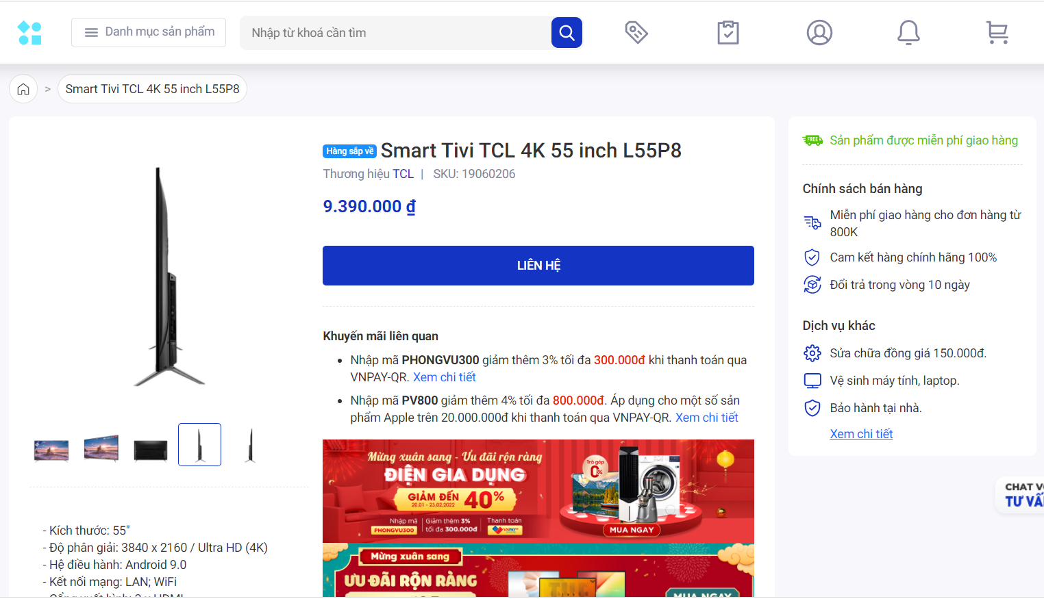 Đơn cử như Smart Tivi 55 TCL 55P8, xuất xứ Việt Nam được nhà thầu đề xuất và Phòng GD&ĐT huyện Đông Anh duyệt mua với giá 16.500.000 đồng/chiếc.
