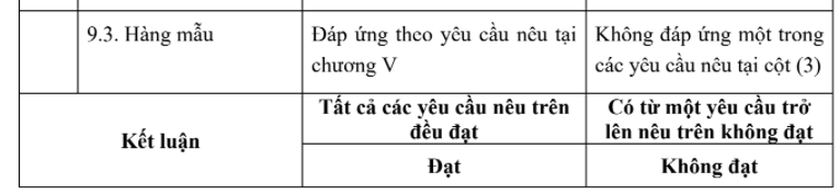 Cài cắm tiêu chí nộp hàng mẫu với hàng hóa thông thường