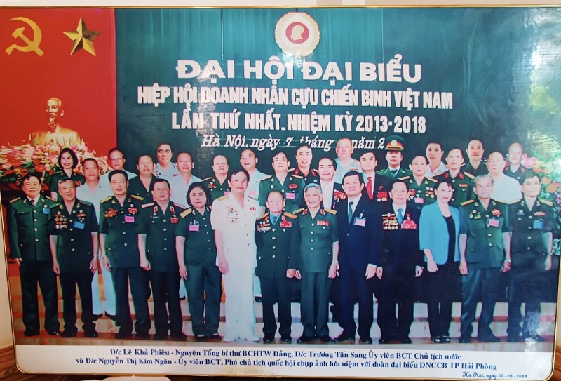 Ông Nguyễn Huy Giáp được vinh dự chụp ảnh cùng Đ/c Lê Khả Phiêu - Nguyên Tổng bí thư BCH TW Đảng, Đ/c Trương Tấn Sang - Uỷ viên BCT Chủ tịch nước và Đ/c Nguyễn Thị Kim Ngân - Uỷ viên BCT, Phó chủ tịch Quốc hội trong Đại hội đại biểu Hiệp hội doanh nhân cựu chiến binh 2013-2018