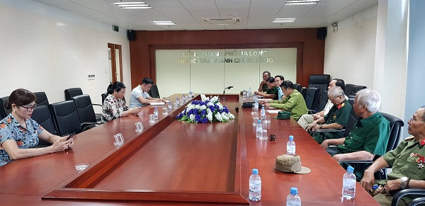 | Các thương binh của Xí nghiệp Tập thể Thương binh Quang Minh ngồi chờ làm việc với lãnh đạo UBND TP.Hạ Long |