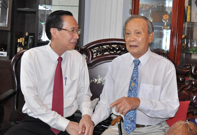 | Phó Chủ tịch thường trực UBND TP HCM Lê Thanh Liêm thăm PGS.TS Lý Hòa vào ngày Hiến chương Nhà giáo năm 2016 |
