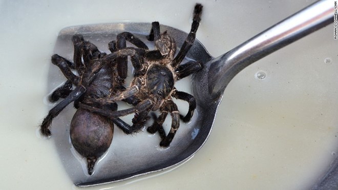Phóng viên Ronan O'Connell của CNN đã chia sẻ kinh nghiêm của mình khi thưởng thức một món ăn rất đặc biệt tại Campuchia, món nhện chiên giòn.