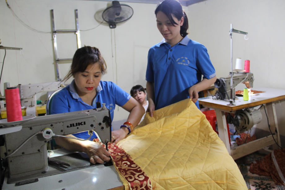 Cửa hàng lúc này không có khách ra vào, nhưng trong căn phòng nhỏ ấy, chị Yến, chị Vân và mọi người vẫn đang cần mẫn với công việc của mình để kịp giao hàng đúng hẹn. Sau khi được anh Quân nhận vào làm tại xưởng may của mình, suốt 13 năm qua, dù không phải là người thân họ hàng nhưng hai chị đã cùng động viên, giúp đỡ lẫn nhau để trở thành những thợ may lành nghề có tiếng.