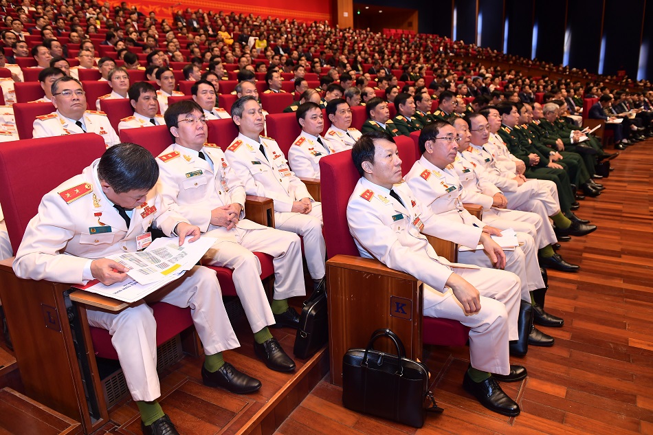 Bộ trưởng Tô Lâm khẳng định, phát huy truyền thống Anh hùng vẻ vang hơn 75 năm xây dựng, chiến đấu và trưởng thành, dưới sự lãnh đạo của Đảng Cộng sản Việt Nam, lực lượng CAND nguyện tuyệt đối trung thành với Tổ quốc, Đảng và Nhân dân; quyết tâm phấn đấu xây dựng lực lượng CAND thực sự trong sạch, vững mạnh, tiêu biểu, thể hiện ý chí, trách nhiệm của toàn lực lượng CAND về khát vọng và niềm tin xây dựng một xã hội trật tự, kỷ cương, an ninh, an toàn, lành mạnh, mỗi người dân Việt Nam được hưởng cuộc sống ấm no, hạnh phúc và thanh bình; xứng đáng với sự tin yêu của Đảng, Nhà nước và Nhân dân, góp phần thực hiện thắng lợi sự nghiệp xây dựng và bảo vệ Tổ quốc Việt Nam xã hội chủ nghĩa; xây dựng đất nước ta hùng cường, phát triển và phồn vinh.