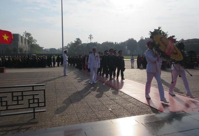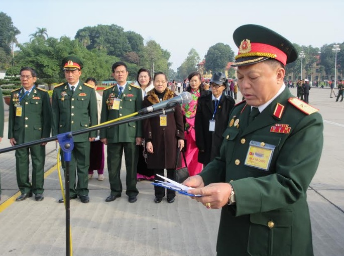 Thay mặt CCB Tiểu đoàn 41 Đặc công – Đơn vị AHLLVT, quân tình nguyện Việt Nam chiến đấu tại chiến trường Lào trong kháng chiến chống Mỹ từ năm 1967 đến năm 1973 và ngày toàn thắng 30/4/1975 của dân tộc Việt Nam và những đại biểu tham dự Lễ Báo công, Thiếu tướng Lý A Sáng, nguyên Phó Tư lệnh Quân khu II (Quân khu Tây Bắc) lên Báo công với Bác.