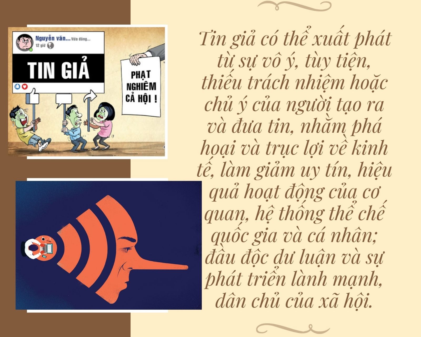 Vấn nạn tin giả đã, đang và sẽ tiếp tục tồn tại, len lỏi phát tán trong cộng đồng với những nội dung, quy mô và trong nhiều lĩnh vực khác nhau, gây nhiều hệ lụy tiêu cực, đe dọa sự lành mạnh thông tin và ổn định trật tự xã hội; Thậm chí, một số báo chí và nhà báo cũng vô tình hay cố ý bị mắc bẫy tin giả, sản xuất và phát tán tin giả, thông tin sai sự thật, xuyên tạc, thổi phồng sự sợ hãi, gây hoang mang trong dư luận xã hội …
