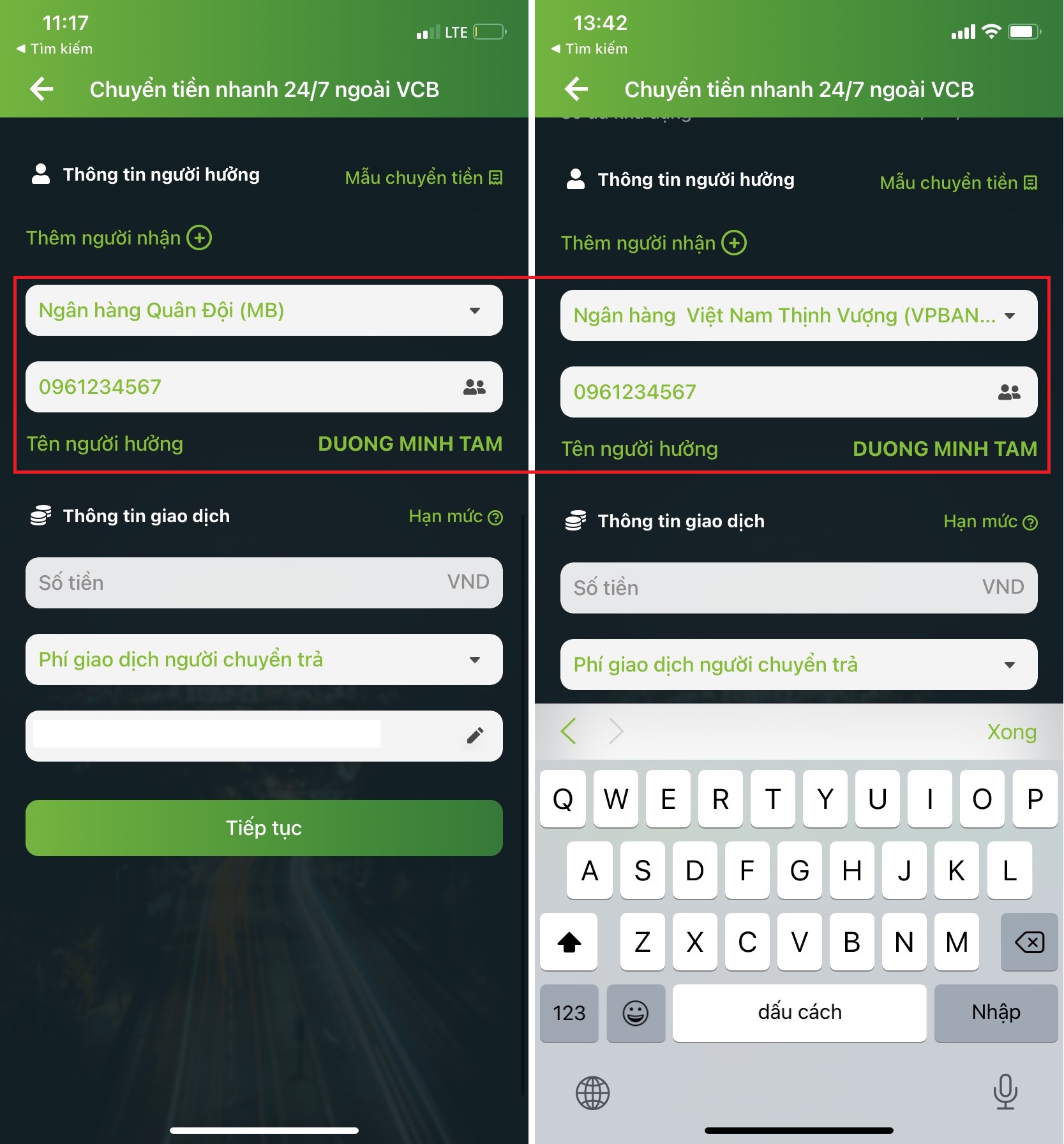 Theo Cơ quan Cảnh sát Điều tra Công an TP.HCM, ngày 23/11/2022, Tâm mở tài khoản thanh toán, số tài khoản 0961234567 tại ngân hàng này. Ngày 23/5/2023, Tâm đăng ký tài khoản qua ứng dụng của ngân hàng này trên điện thoại di động đối với tài khoản thanh toán số 0961234567 và cài đặt trên điện thoại, xác thực thông qua phương thức eKYC (định danh điện tử xác thực danh tính khách hàng).