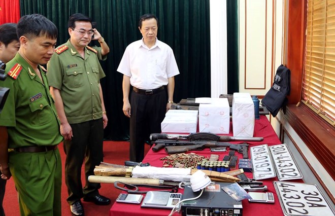 Qua khai thác, khám xét người và xe ô tô của đối tượng, Công an tỉnh Lạng Sơn đã phát hiện, thu giữ: 1 súng K54 trong đó có 5 viên đạn (1 viên dã lên nòng); 1 khẩu súng col, khoảng 3 kg các cục tinh thể màu trắng ghi là ma túy đá; 4 thanh kiếm, 5 điện thoại di động, 1 máy tính bảng, 4 thanh kiếm và 21.590.000 đồng.