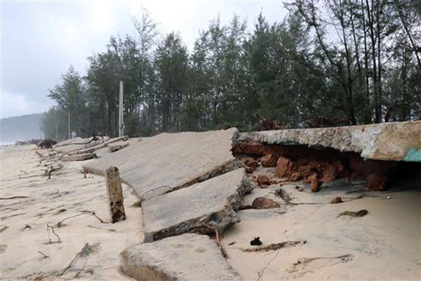 Những tháng cuối năm 2022 và đầu năm 2023, các đợt triều cường kết hợp sóng lớn làm nước biển dâng cao vào đất liền, gây sạt lở bờ biển, làm ngập nhà ở và thiệt hại hoa màu của người dân.