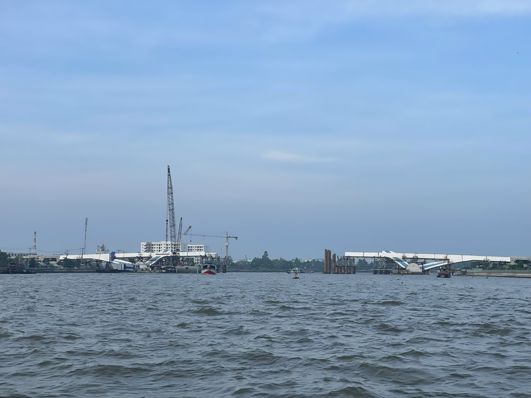 Thi công cầu Rạch Miễu 2. Ảnh: Mỹ Tho