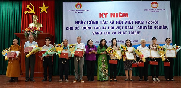 Ngày 23/3, Sở Lao động – Thương binh và Xã hội tỉnh An Giang phối hợp UBMTTQVN tỉnh An Giang tổ chức họp mặt kỷ niệm 'Ngày Công tác xã hội Việt Nam 25/3'.