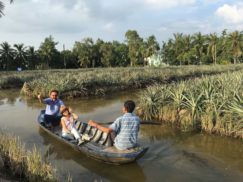 Du khách bơi xuồng ở làng khóm Cầu Đúc Hậu Giang. Ảnh: Phan Huê.