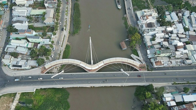 Cầu Nguyễn Thái Học gồm cầu chính và cầu dành cho người đi bộ bên cạnh. Ảnh: Ngọc Tài - VNE.