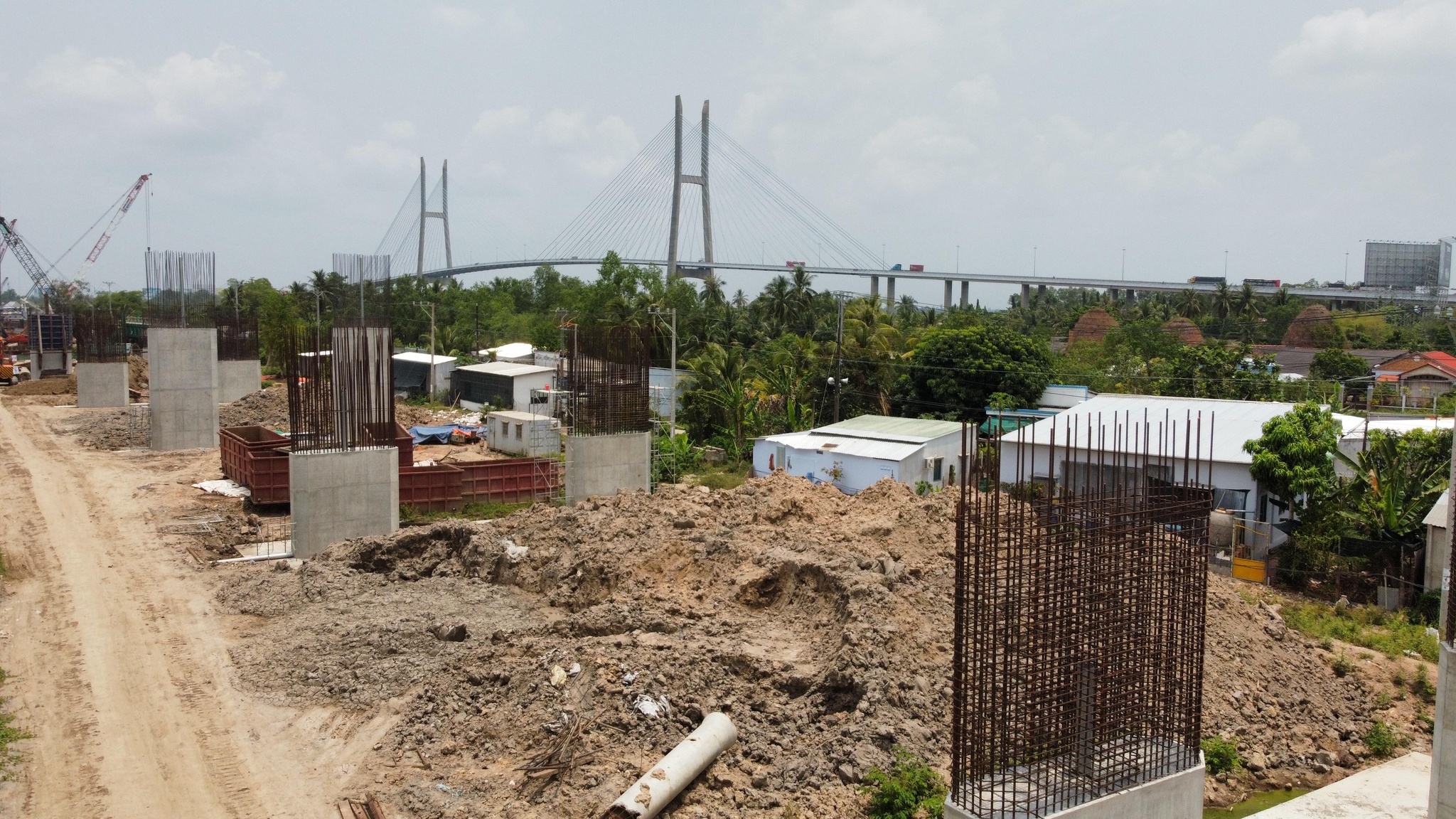 Một phần đường dẫn cầu Mỹ Thuận 2 đã cơ bản hoàn thành