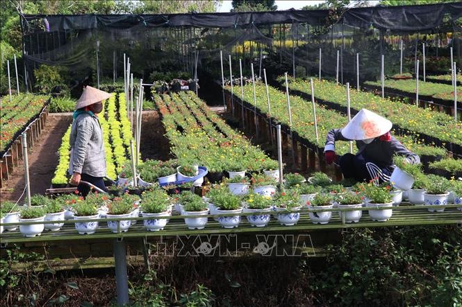 Nông dân xã Tân Khánh Đông, thành phố Sa Đéc, tỉnh Đồng Tháp chăm sóc hoa Tết Nhâm Dần 2022.