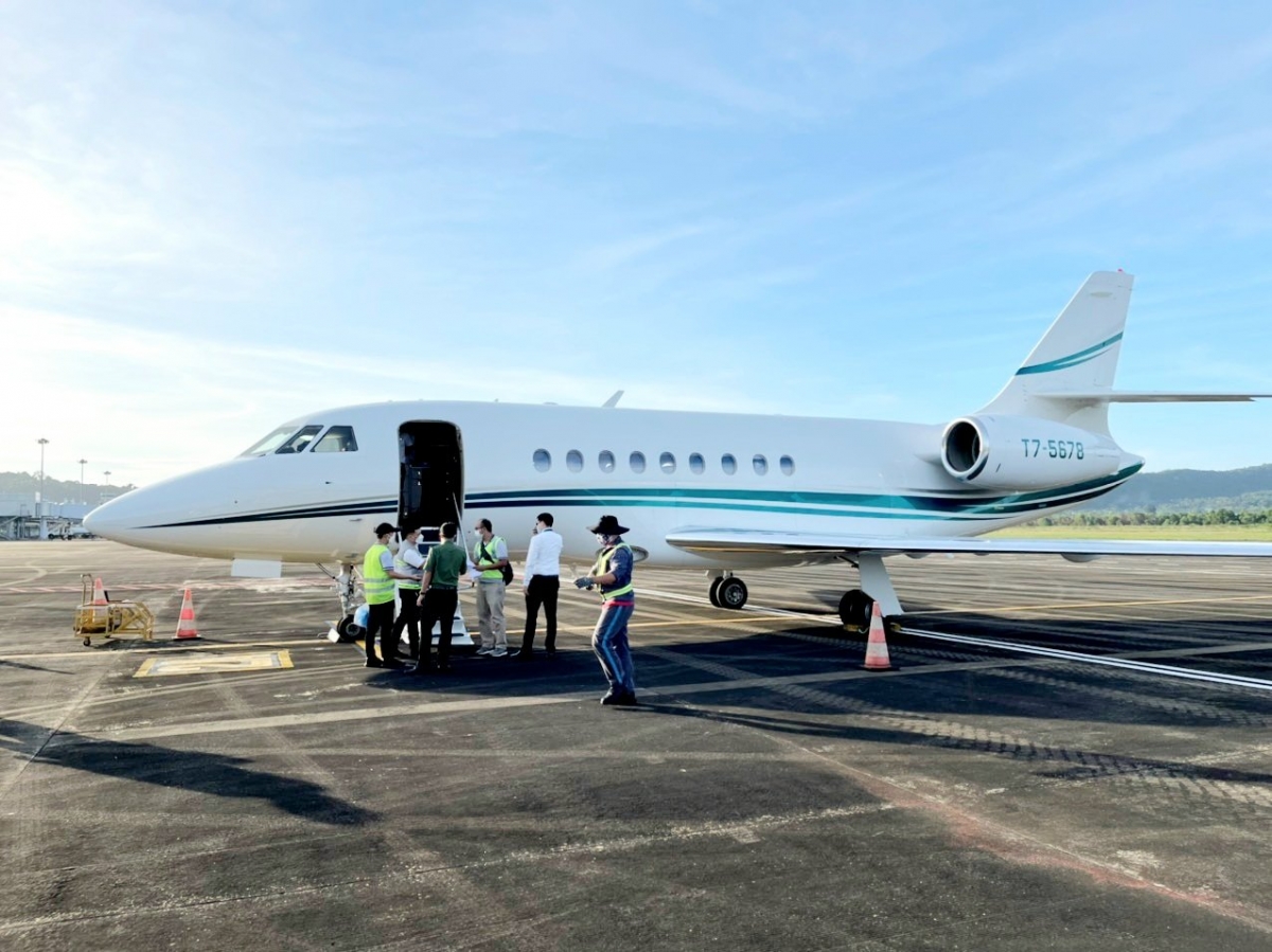 Ba đoàn khách từ Lào đến Phú Quốc vào ngày 30 và 31/12 theo chương trình thí điểm đón khách quốc tế sử dụng hộ chiếu vaccine. Loại chuyên cơ được sử dụng là T75678/Falcon 2000 và LLL226/MA60. Được biết đây là dòng khách hạng sang, có sức chi tiêu cao và ưu tiên sử dụng các dịch vụ lưu trú, nghỉ dưỡng cao cấp.