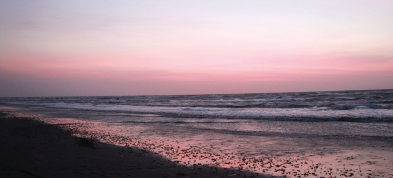 Bãi biển phù sa trải dài gần 30km ở Bình Đại ngoài hơn 3.000ha sân nghêu, hàng trăm nhà dân cùng những chòi canh nghêu tạm bợ đúng nghĩa là nơi hoang sơ bởi chưa có hoạt động du lịch. Một ngày ở nơi này bắt đầu với tiếng kêu gần như vô thanh của những con nhạn biển bé xíu trước sóng biển vỗ ầm ầm mùa gió chướng.