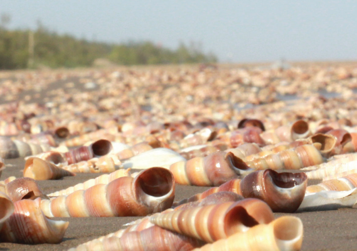 Mùa gió chướng mỗi năm là thời điểm hàng triệu vỏ ốc được sóng biển xô bờ