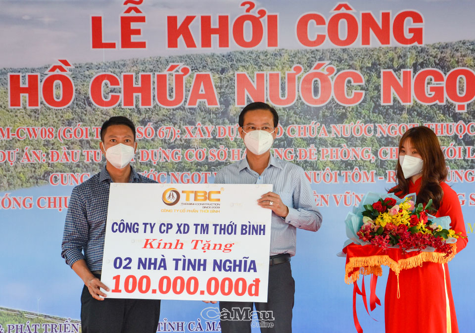Dịp này, Liên danh Công ty Cổ phần Xây dựng Thương mại Thới Bình - Công ty Cổ phần Xây dựng Thủy lợi Cà Mau trao tặng 2 căn Nhà tình nghĩa cho huyện U Minh tổng trị giá 100 triệu đồng.