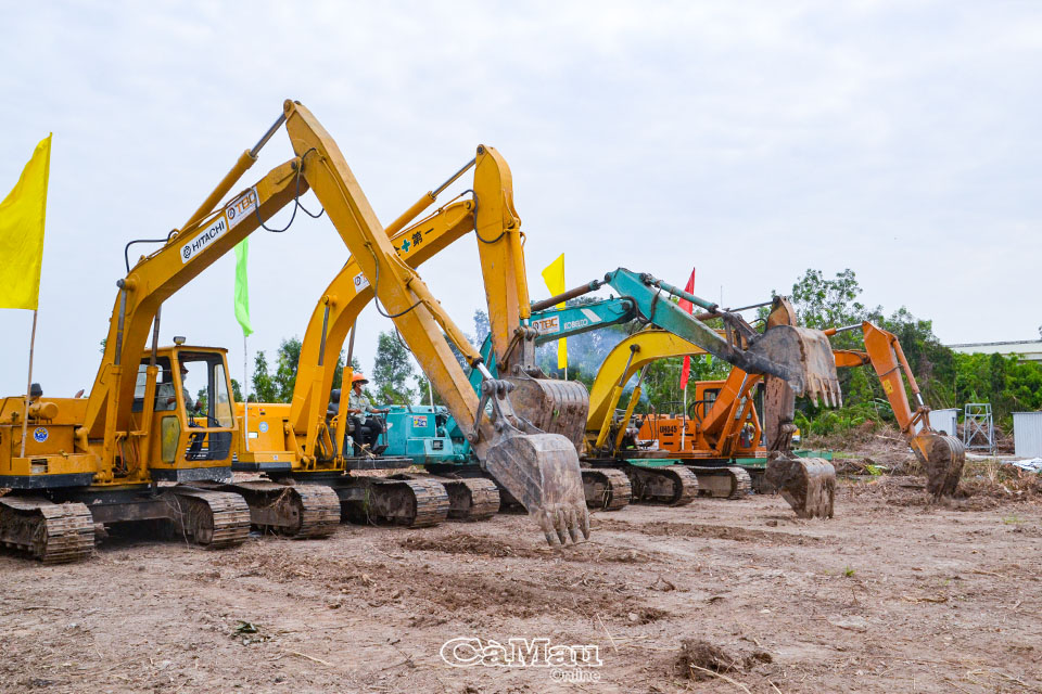 Nhân lực, máy móc, phương tiện được tập kết, khởi động thi công công trình.