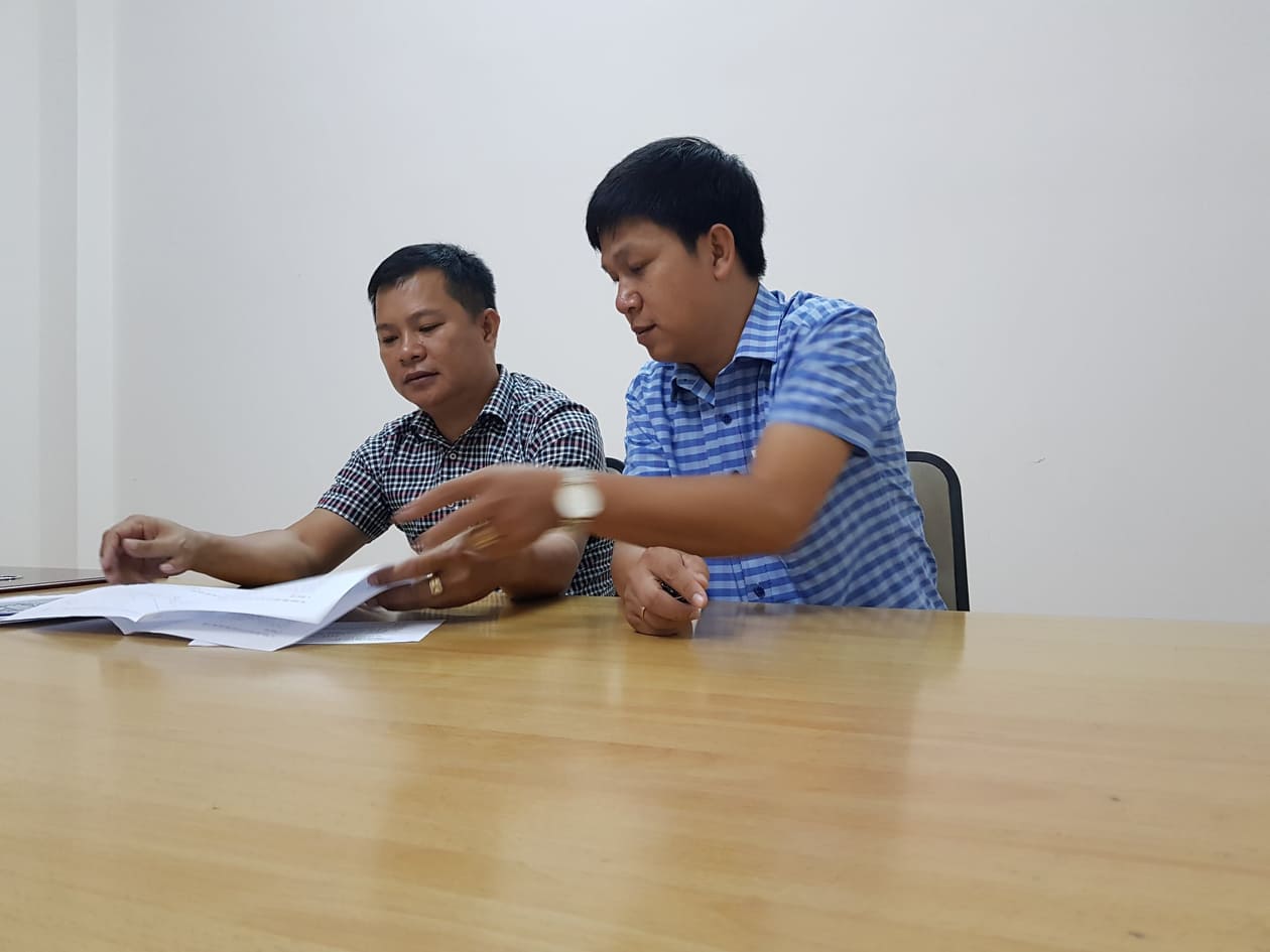 Ông Nguyễn Thế Hòa, Phó Chủ tịch UBND xã Hòa Long và ông Trần Tấn Khoa, cán bộ địa chính xã trong buổi làm việc với PV (từ trái sang)
