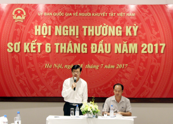 Chiều ngày 28/7, tại Hà Nội đã diễn ra Hội nghị sơ kết 6 tháng đầu năm và triển khai nhiệm vụ 6 tháng cuối năm 2017 của Uỷ ban Quốc gia về Người khuyết tật Việt Nam. Tới dự Hội nghị có Thứ trưởng Nguyễn Trọng Đàm- Phó chủ tịch Ủy ban Quốc gia về NKT Việt Nam cùng đại diện các cơ quan hữu quan, các tổ chức quốc tế và các chuyên gia cùng các đồng chí đại diện cho các đơn vị trực thuộc UBQG.
