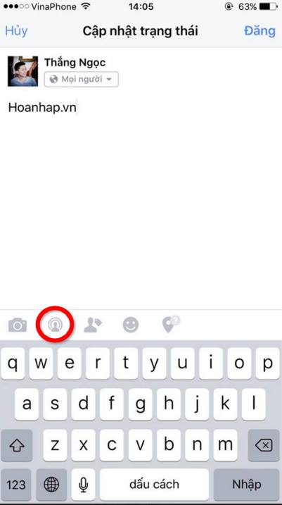 Biểu tượng của Live hiện ở vòng tròn đỏ, người dùng có thể nhấp vào biểu tượng và phát video trực tiếp trên facebook của mình - Ảnh chụp màn hình