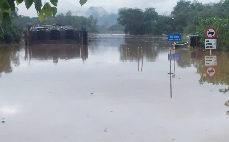Một số tuyến đường liên thôn, xã đi qua thôn Phú Hữu, Phú Kinh (xã Liên Trạch) bị ngập, có đoạn ngập sâu 1,2m. Hiện lực lượng các Đồn Biên phòng đã phối hợp chính quyền địa phương đặt biển báo cấm người, phương tiện không qua lại khu vực nước chảy xiết và bố trí lực lượng chốt chặn.