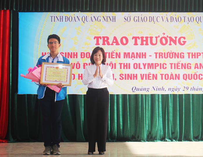 Tại lễ tuyên dương và trao thưởng cho học sinh vô địch Hội thi Olympic Tiếng Anh dành cho học sinh, sinh viên toàn quốc, đồng chí Vũ Thị Thu Thủy, Phó Chủ tịch UBND tỉnh Quảng Ninh biểu dương và ghi nhận thành tích xuất sắc của học sinh Đoàn Tiến Mạnh, đồng thời cũng nhấn mạnh, kết quả đó là sự cố gắng, nỗ lực của em trong quá trình học tập cũng như sự quan tâm, giúp đỡ của thầy cô, bạn bè và gia đình, thành tích của em cũng chính là niềm vinh dự, tự hào của của thầy, trò trường THPT Hòn Gai và tỉnh Quảng Ninh.