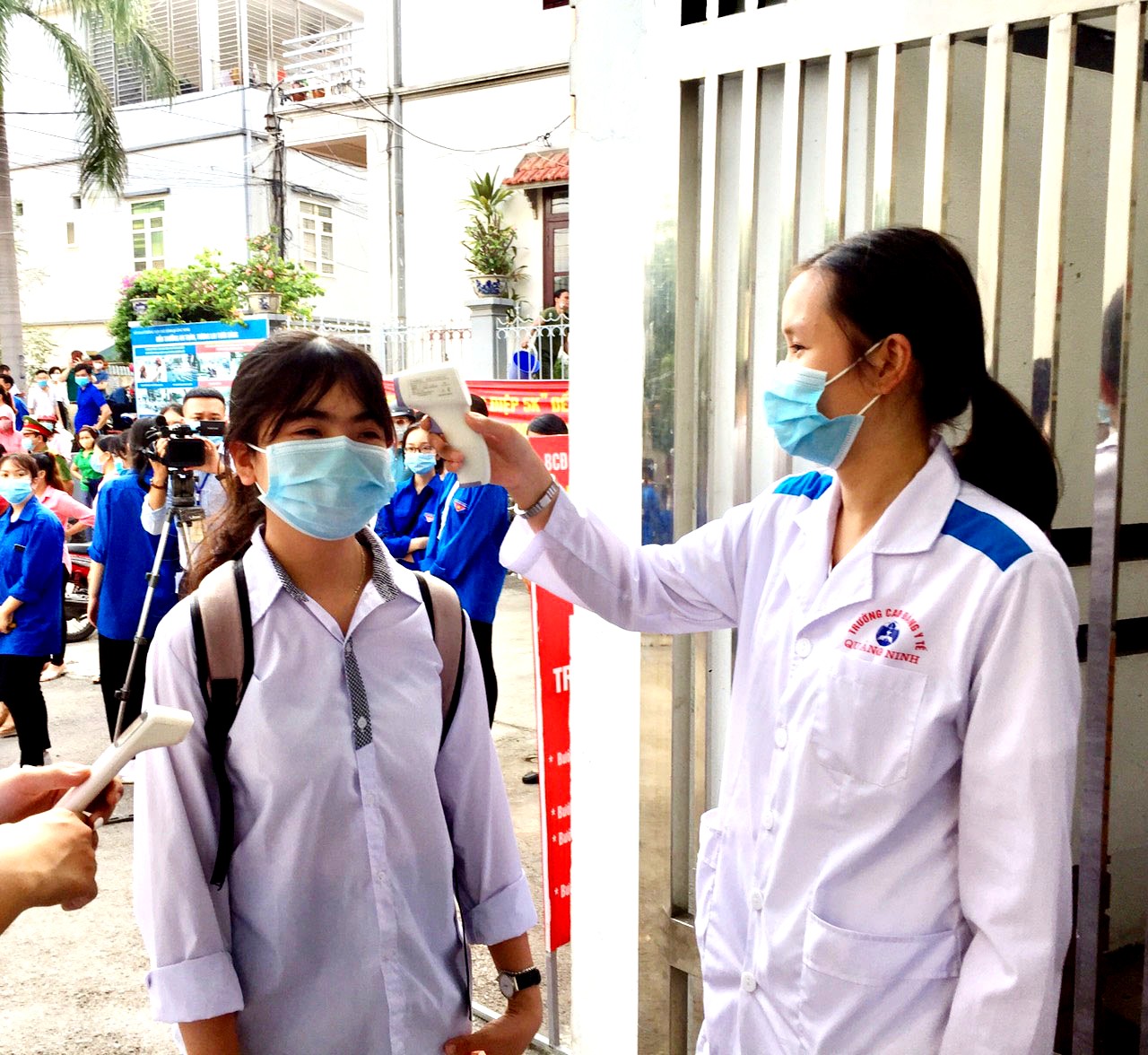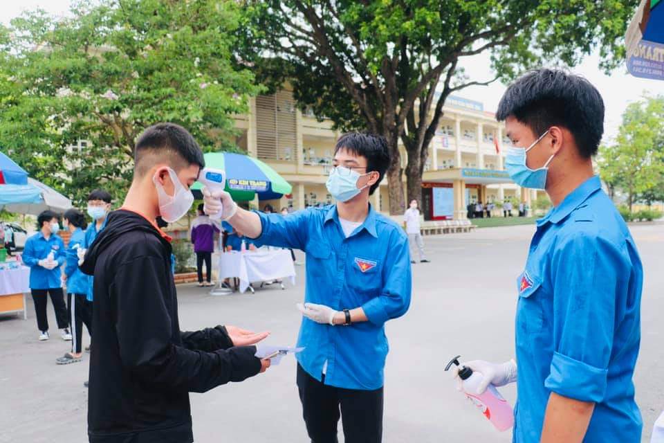 Các thí sinh được đo thân nhiệt trước khi vào phòng thi