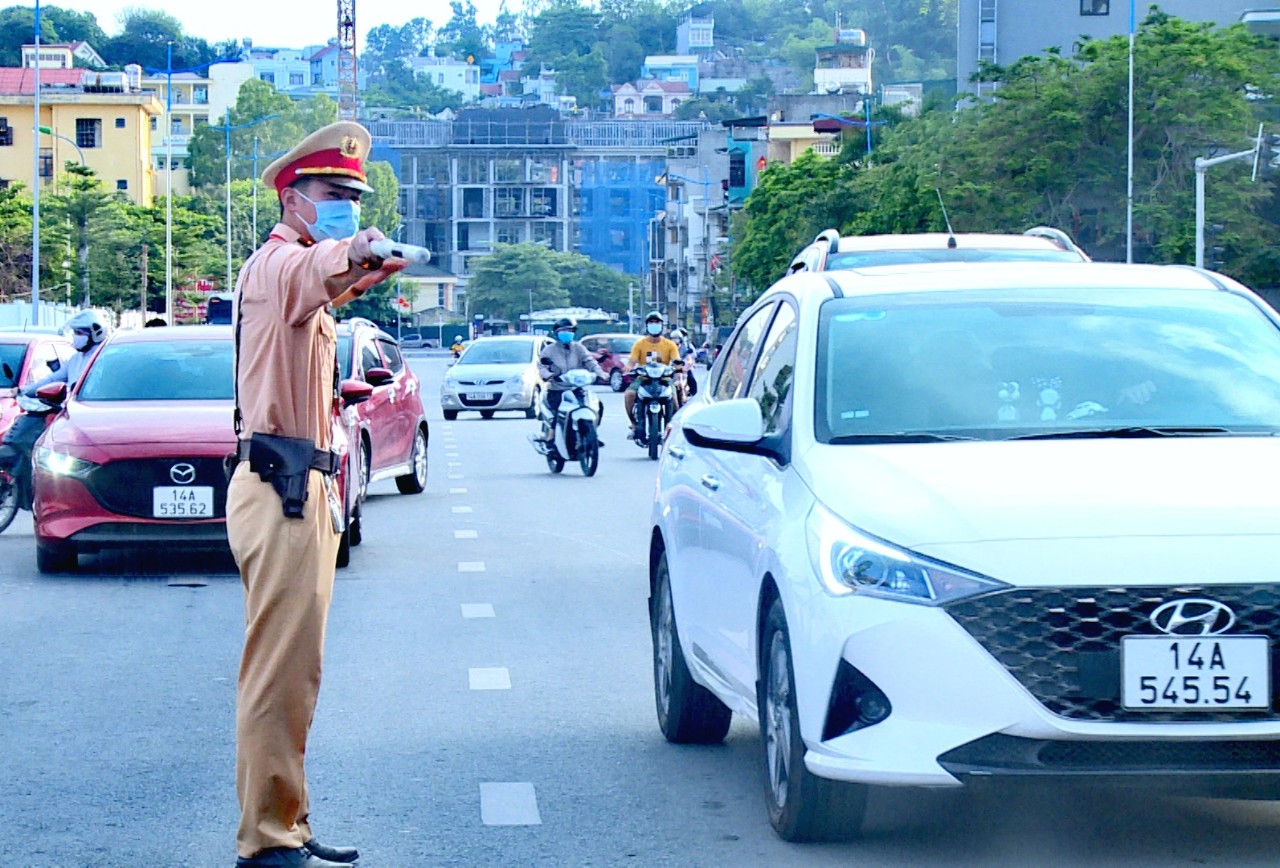 Lực lượng Công an làm nhiệm vụ phân luồng giao thông tại các điểm thi