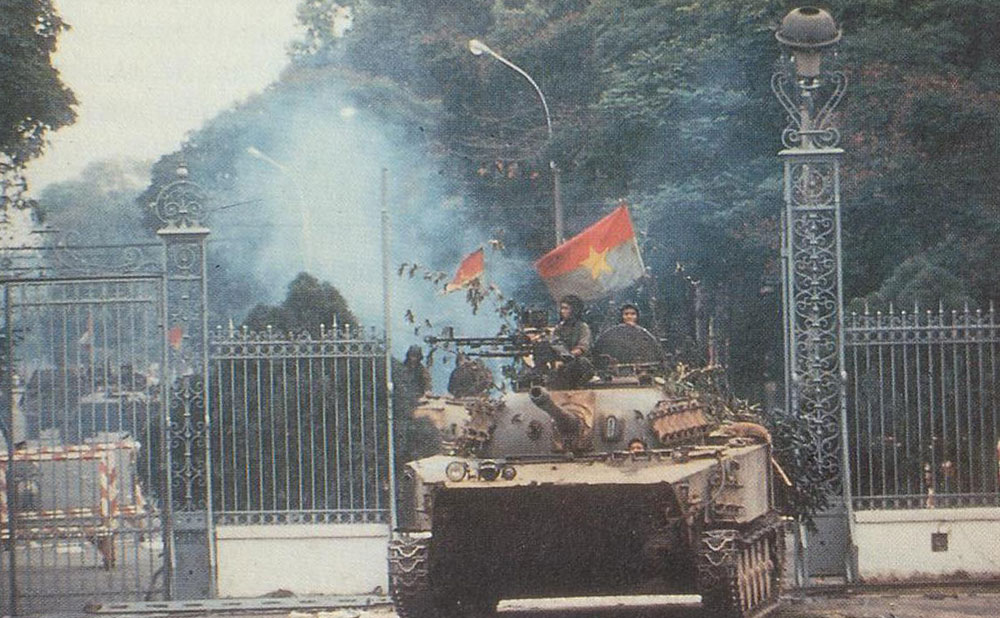 Xe tăng quân giải phóng tiến vào Dinh Độc lập ngày 30/4/1975. Ảnh tư liệu