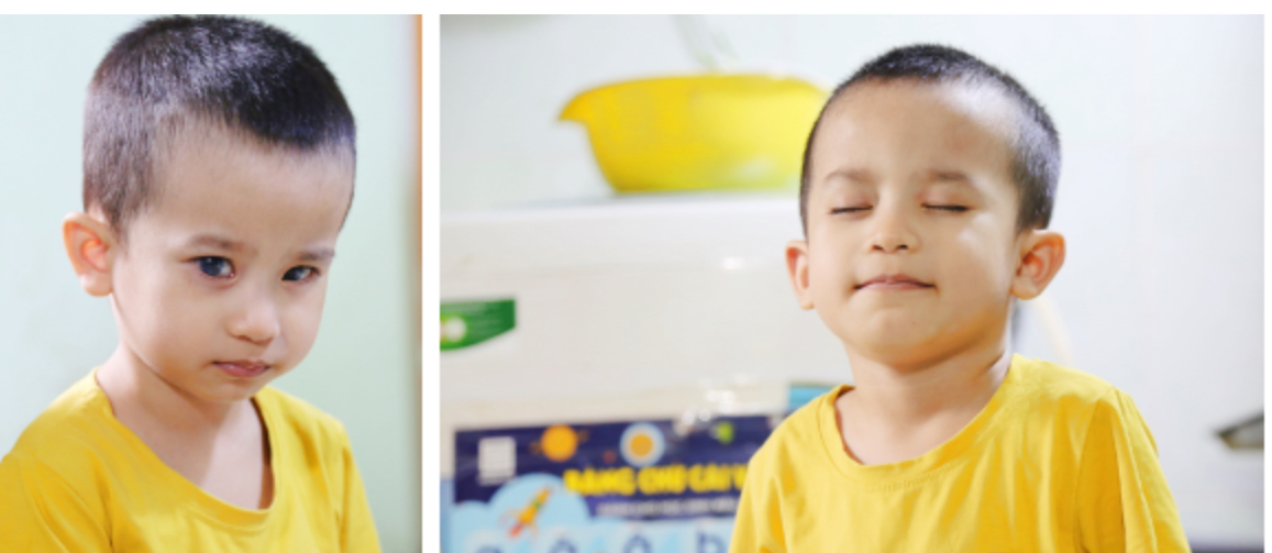 Gia Anh với đôi mắt đầy tinh nghịch và sự nỗ lực của mẹ.