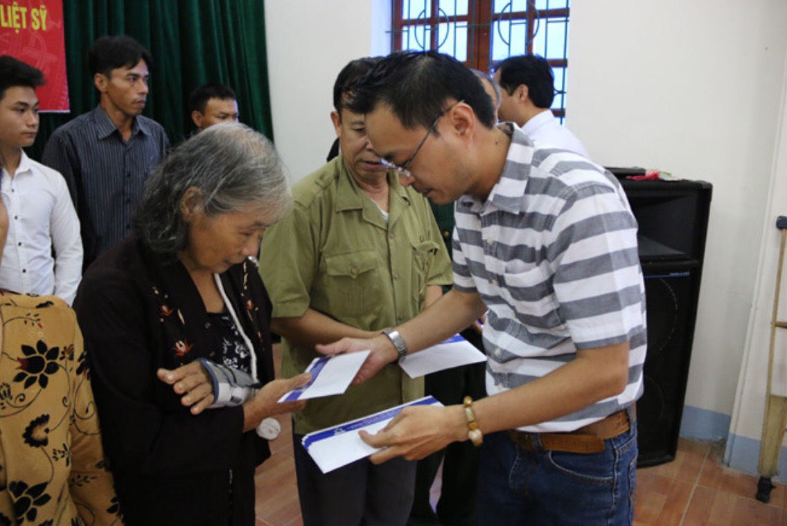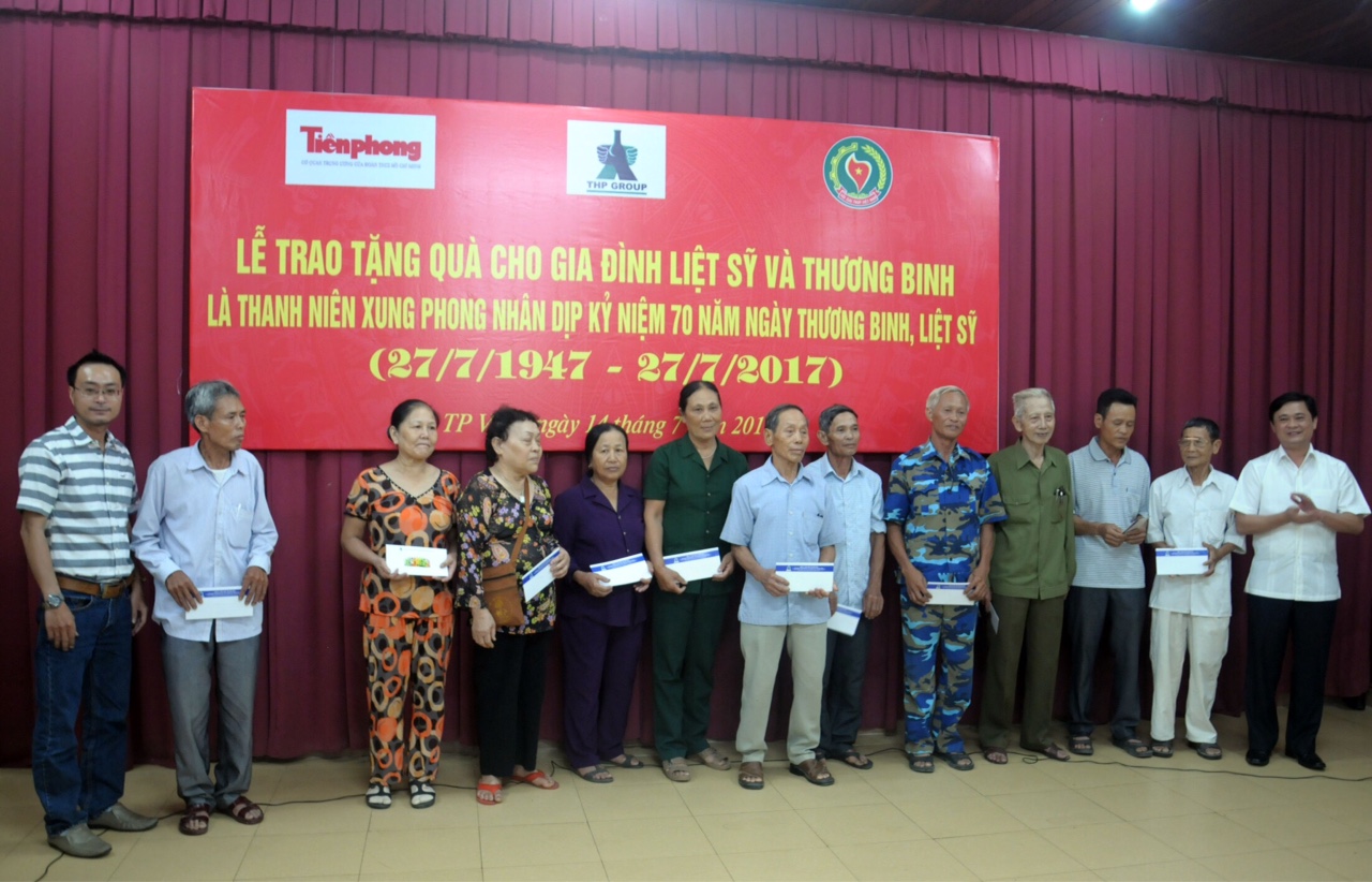 | Đại diện chính quyền địa phương và Tập đoàn Tân Hiệp Phát tặng quà cho các gia đình liệt sỹ và thương binh là thanh niên xung phong có hoàn cảnh khó khăn trên địa bàn hai tỉnh Nghệ An, Hà Tĩnh |
