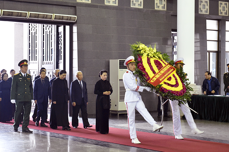 | Đoàn đại biểu Quốc hội nước CHXHCN Việt Nam do Chủ tịch Quốc hội Nguyễn Thị Kim Ngân làm trưởng đoàn viếng đồng chí Nguyễn Phúc Thanh. Ảnh: VGP/Nhật Bắc |